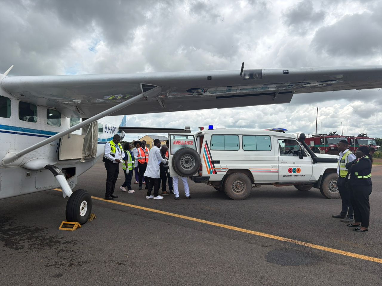 In response to the emergency, ZFDS deployed the Caravan, registration 9J-AGC, piloted by Deputy Director of Aviation, Mr. Patrick Kawanu, with Co-Pilot Ms. Chanda Mumpangwe. The aeromedical evacuation was supported by Paramedics Susan Banda and Salifyanji Nachamba, who provided continuous monitoring and care to both patients throughout the flight.